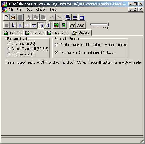 This tracker can be used to compose your music and replay them on any platform with a PT3 player available (Speccy, Amstrad CPC, MSX, …). You can also use it to convert many Speccy music formats to the PT3 format.